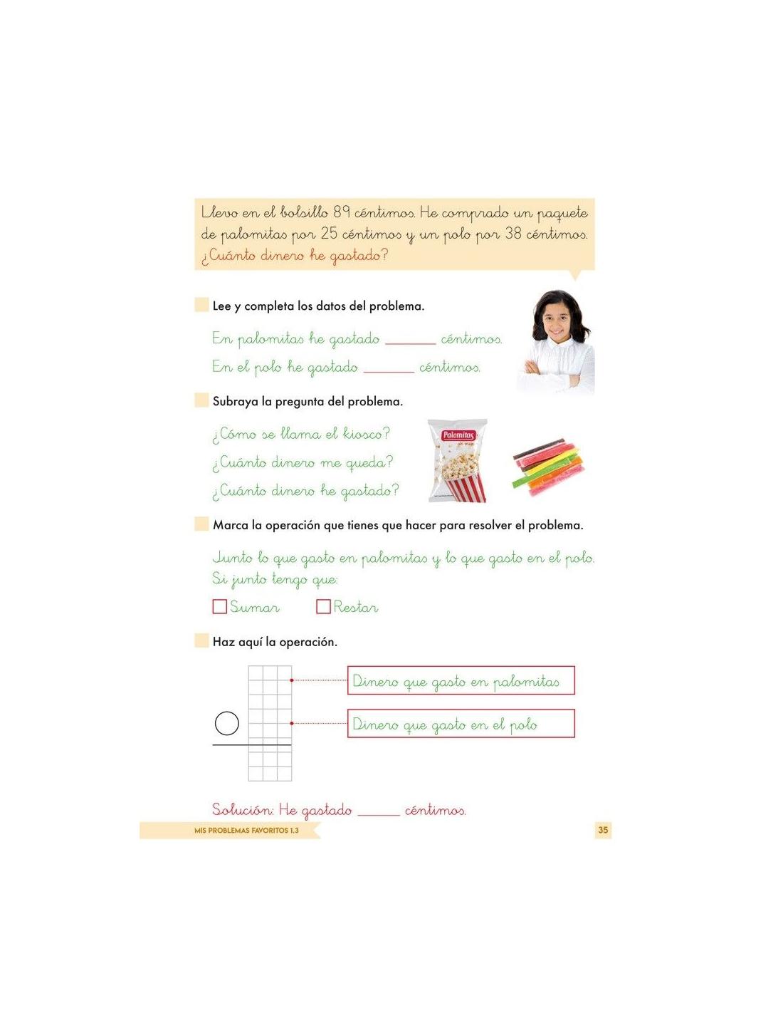 Parte de situaciones cotidianas con sencillas estrategias matemáticas en tres fases (planteamiento, operación y solución), que facilitan la comprensión y resolución de problemas.