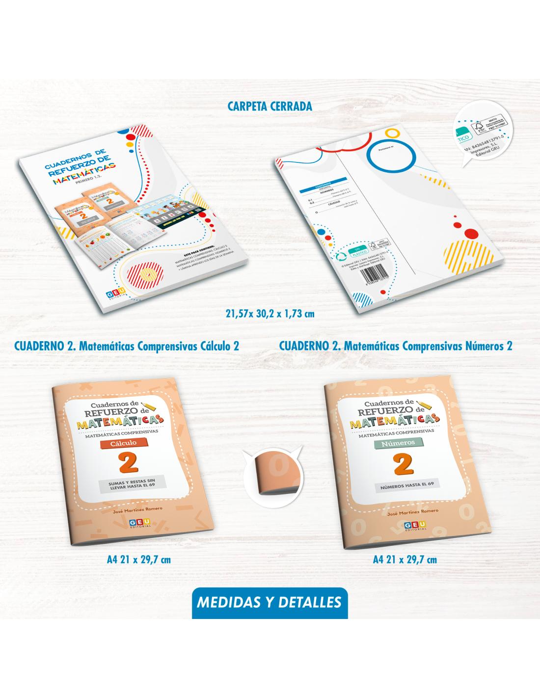 🌟¡Descubre el Pack 1.2. de Cuadernos de Refuerzo de Matemáticas Comprensivas GEU. Cálculo 2 + Números 2 de Editorial GEU 1 Primaria para aprender a sumar y restar y trabajar los números hasta el 69 de manera divertida!🌟