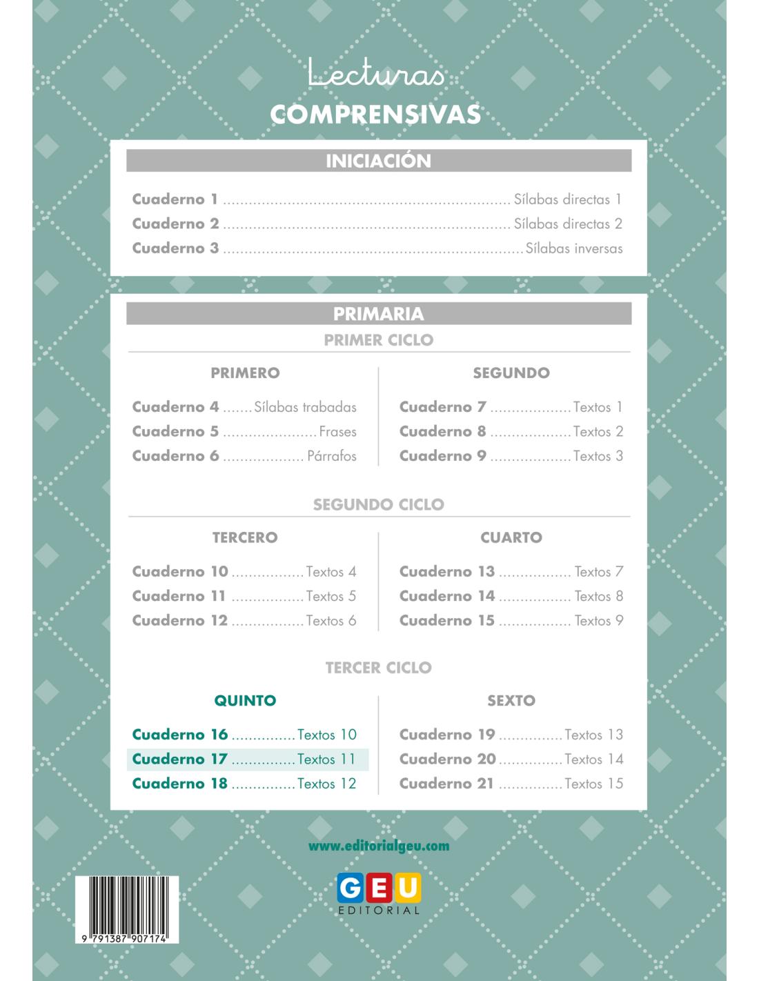 LECTURAS COMPRENSIVAS 17 - Cuaderno de Lecturas Comprensivas GEU | TEXTOS 11 – 5º Primaria | Letra de Imprenta y Pauta Cuadrícula